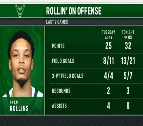 今天雄鹿对阵勇士的比赛,就上演了这样的爽文剧情,男主角叫做瑞安-罗林斯。对阵老东家勇士爆砍32分3篮板8助攻,其中末节就拿到13分,连续进球终结比赛悬念。